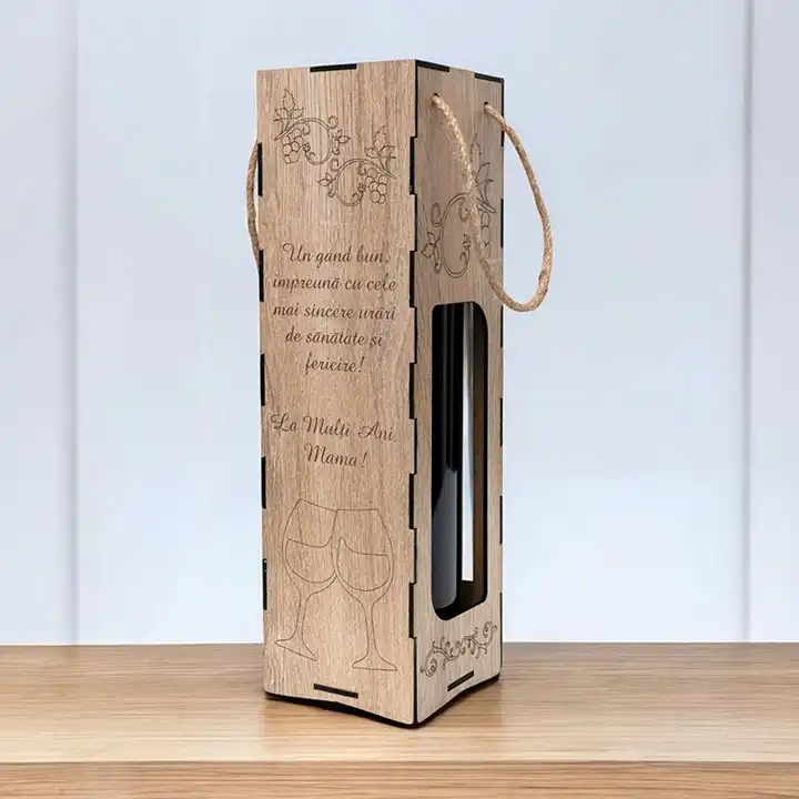 Cutie din HDF Lăcuit pentru Vin – Gravură Laser , „Mama”